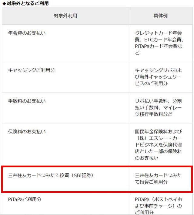 この積立てが対象になるなら、月5万円として年間60万円は確定だったのですが。これ以外にも手数料やSuica、PASMO、nanaco、WAONなどの電子マネーへのチャージ以外にも対象外の利用はまだあるので、公式ページを一読されることをおススメします。